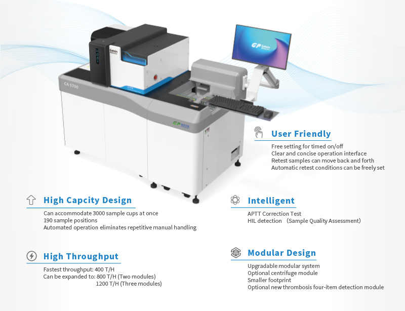 Анализатор CA-5700 разработан для обеспечения более быстрых, точных и стабильных решений для анализа свертываемости крови. Он поддерживает автоматическое разведение и повторное тестирование, имеет максимальную производительность 400 тестов в час и обеспечивает качественную интерпретацию результатов. Этот анализатор эффективно повышает точность результатов анализов, обеспечивая надежную работу каждого отчета.