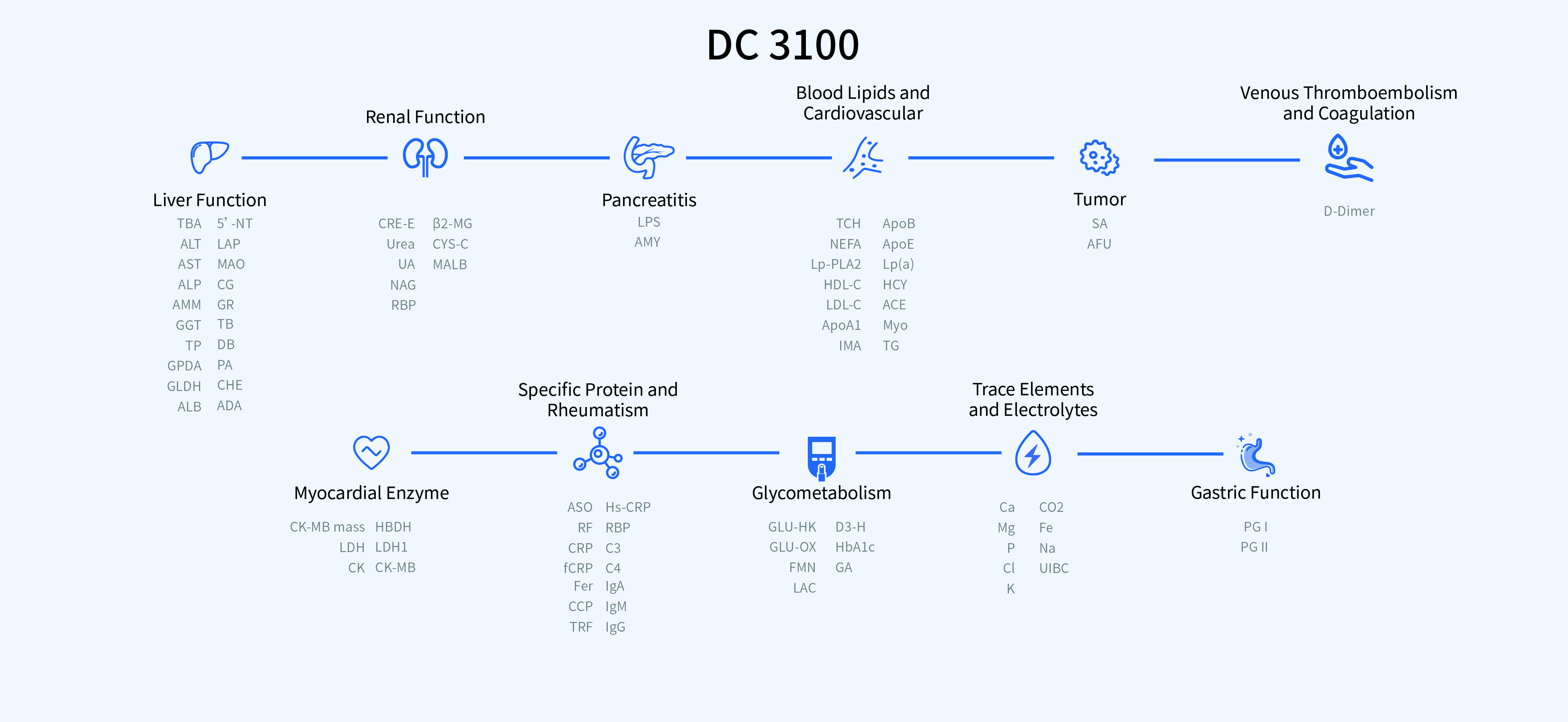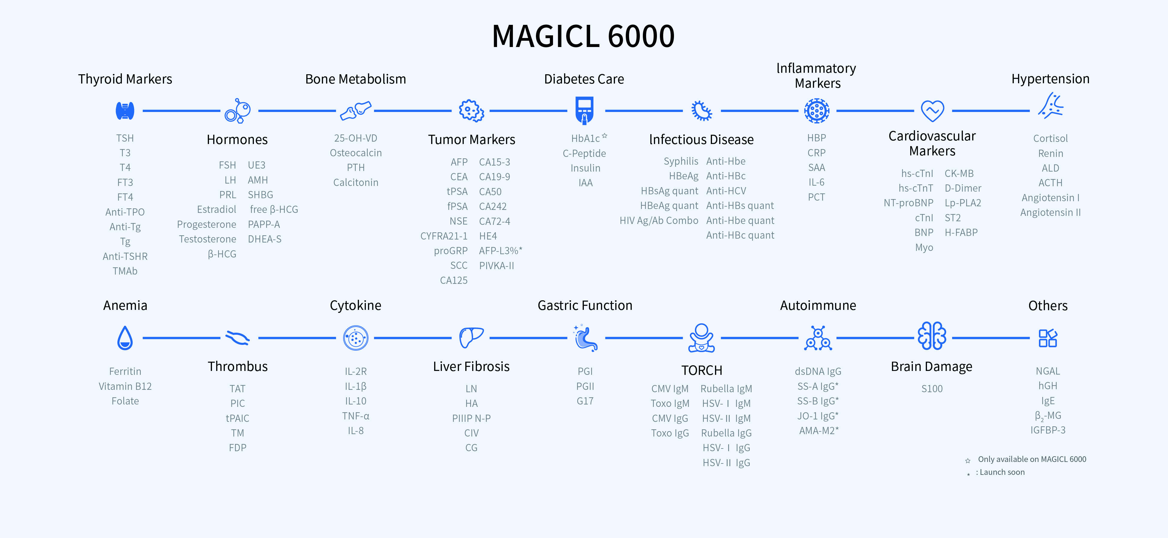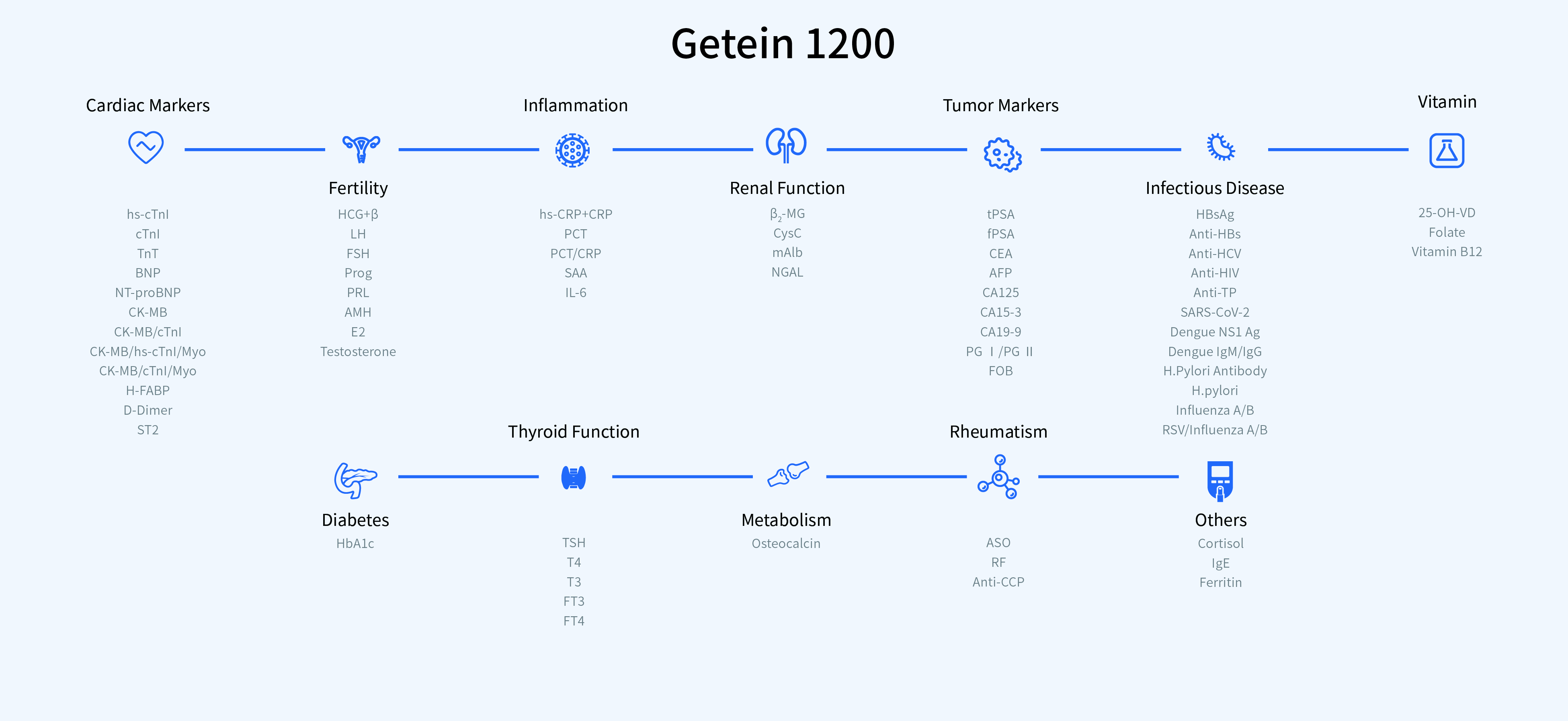 Metis 800 — это модульная система с выдающимися характеристиками, которая органично объединяет множество лабораторных диагностических методов в единое комплексное решение. Модуль хемилюминесценции (MAGICL 6000), модуль клинической химии (сухая система DC 3100), модуль иммунофлуоресценции (Getein 1200) и гематологический модуль (BHA-5100) могут быть гибко скомбинированы для удовлетворения ваших конкретных потребностей.